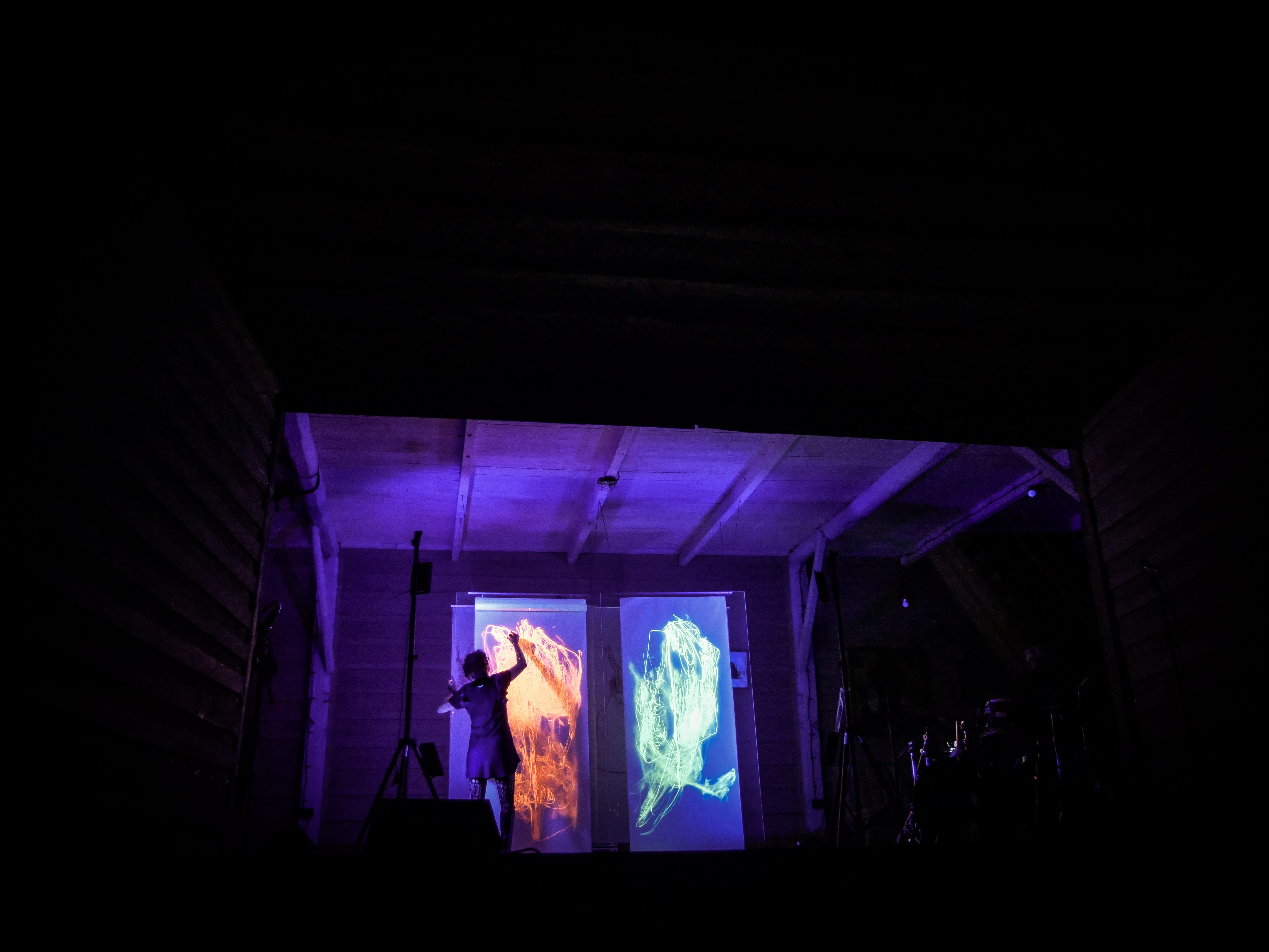 Muzycy też zwracali uwagę na powstający obraz. Kiedy rozmawiałem z nimi po występie, przyznali, że pozostają czujni, obserwują działania artystki. Pod koniec performansu do zespołu dołączył niemiecko-włoski duet Gratkowski (grający między innymi na klarnecie) i Tramontana (puzon). Tego samego wieczoru zaprezentowali oni „instant songs” – muzykę improwizowaną, oryginalną i nie najłatwiejszą w odbiorze. Kolejny dialog bez słów. „Być może nasze piosenki chwilami brzmią dziwnie, ale my lubimy dziwność” – rzucił w pewnym momencie ze sceny jeden z członków zespołu. W tej samej chwili w pobliżu sceny głośno zaszczekał pies. Gratkowski bez chwili zawahania zaczął na swoim instrumencie naśladować dźwięki wydawane przez zwierzę.