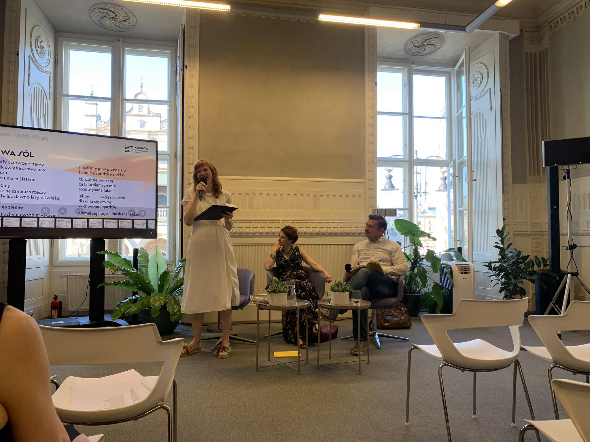 W tętniącym życiem centrum miasta, w Pałacu Potockich na Rynku Głównym, zanurzamy się w atmosferę kobiecej siły w świecie poezji z niemieckimi autorkami Anją Kampmann i Danielą Danz. W ramach Festiwalu Miłosza 8 lipca, odbyło się spotkanie nt. wyjątkowej serii antologii pod nazwą „Sąsiadki. 10 poetek niemieckich” pod redakcją Tomasza Ososińskiego, który także poprowadził wydarzenie.