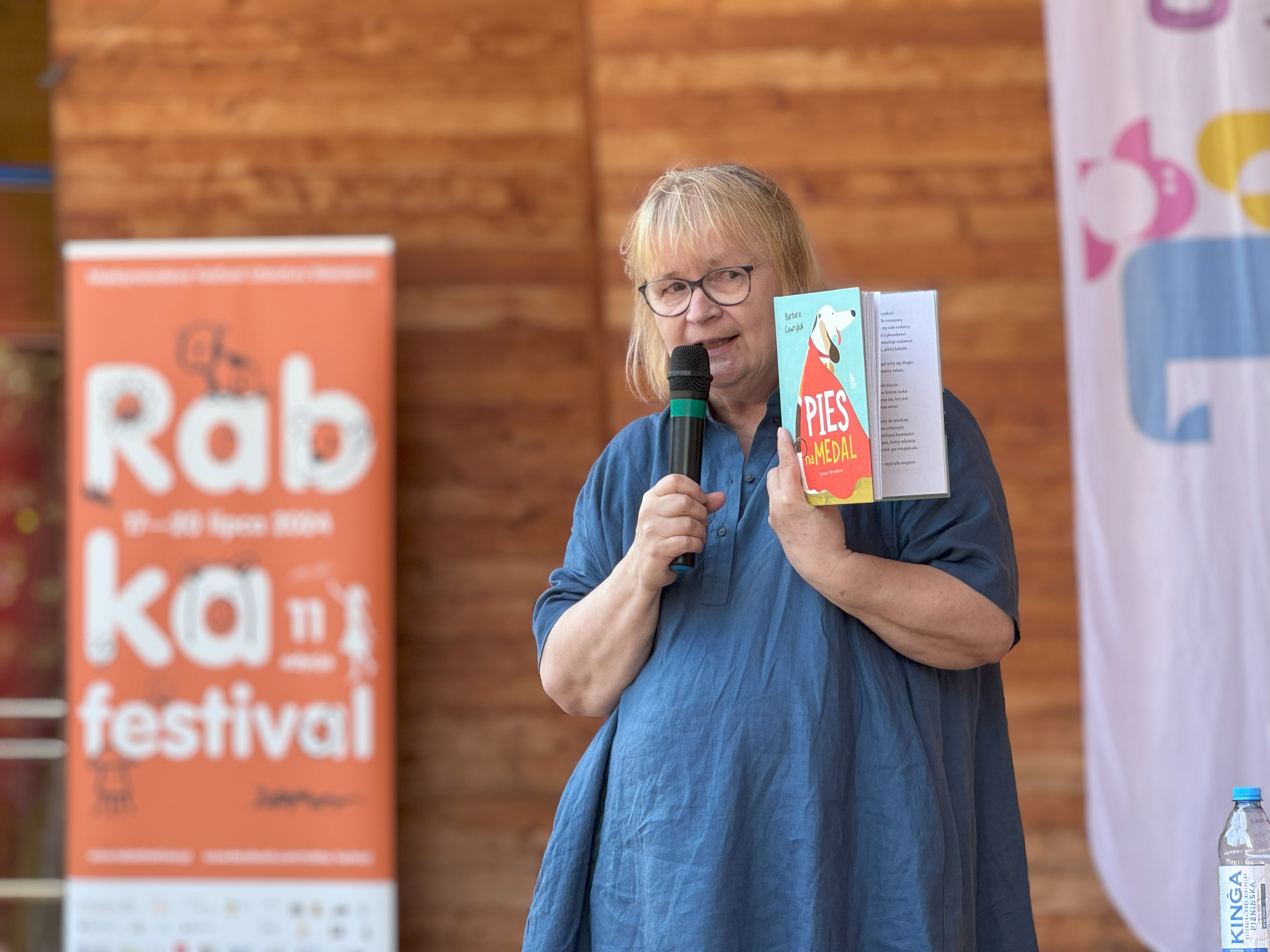 „Pies na medal” - z bohaterami tej książki i jej autorką Barbarą Gawryluk mali miłośnicy czytelnictwa spotkali się drugiego dnia festiwalu. Zen, czyli tytułowy bohater, w towarzystwie swojej codziennej kompanki Lary, odwiedził rabczański amfiteatr, aby tutaj jego pani, Katarzyna Hamata oraz sama Barbara Gawryluk, opowiedziały o powstaniu opowieści o czworonogach i ich codziennych zajęciach. Dzieci z ogromnym zainteresowaniem wsłuchiwały się w przygody z psiej pracy na lotnisku Balice w Krakowie czy z akcji ratowniczych ochotniczej straży pożarnej.